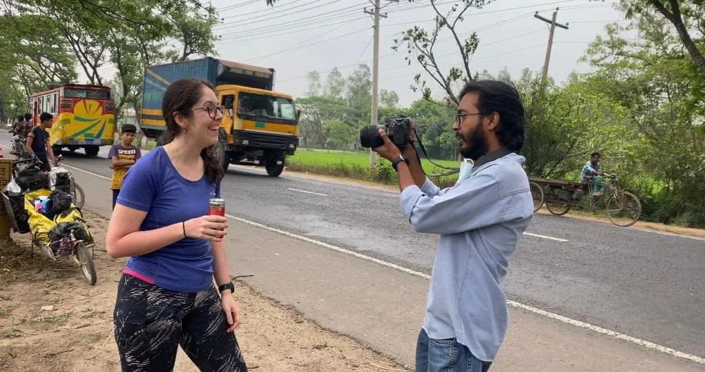 One hour in and I’m drenched in sweat and covered in fumes, The Greatest Showman is blasting out of the speakers, the back trailer has been runover by a car, we’ve had two punctures, navigated through a flood and accidentally hit a pedestrian. I’m gripping onto the back handlebars of the tandem with zero control over which direction we go in or when to pedal. Oh, and there’s a cameraman from a Bangladesh national newspaper following us and filming the whole lot. I’m still not entirely sure how this set of circumstances have come to be. We’re only 10km into a 300km cycle journey from Dhaka to Sylhet and I’m starting to have some doubts about how much of a good idea this all was.